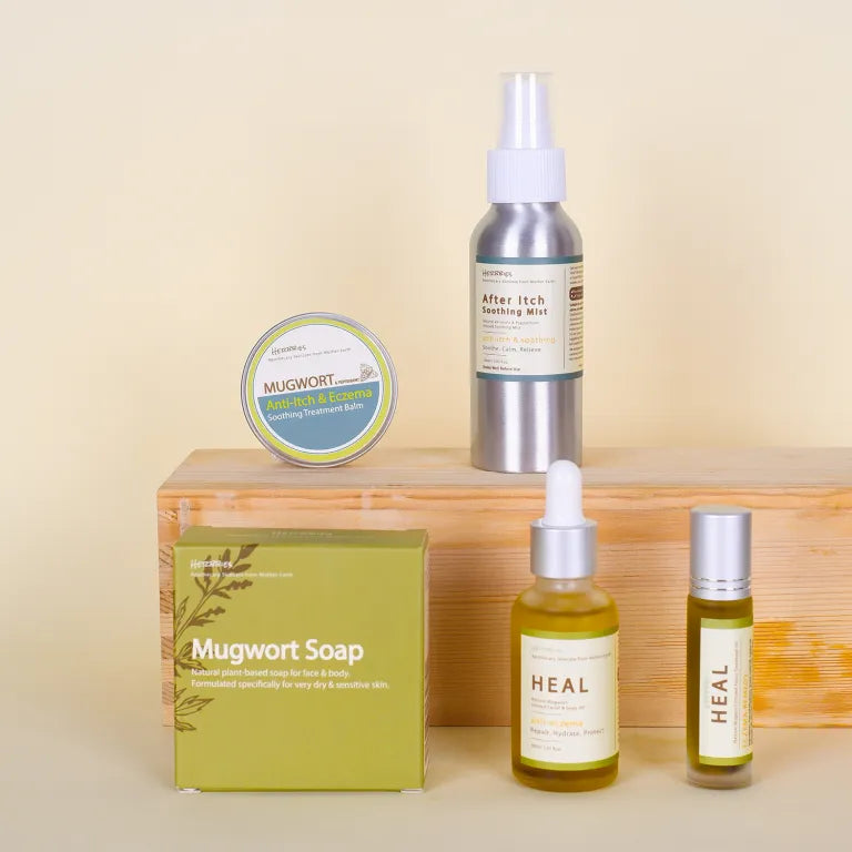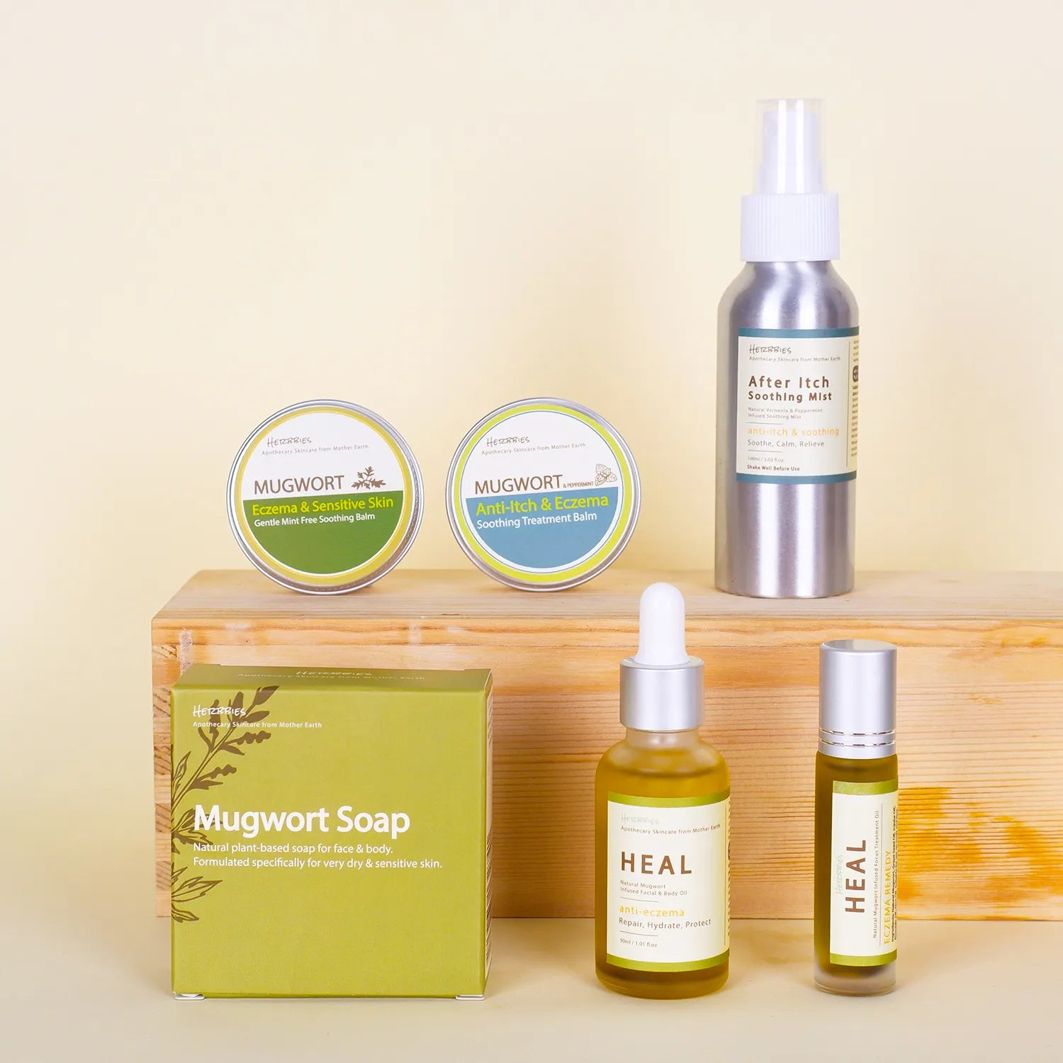 Each product in the care set contain different ingredients, with Mugwort herb as the key ingredient to deep heal eczema and psoriasis symptoms.